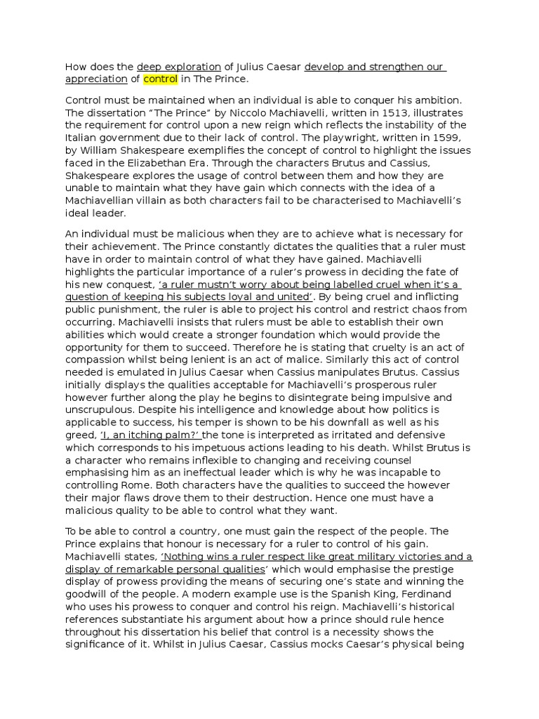 · Our Machiavellian Government. In his essay “The Prince”, Machiavelli writes of certain qualities a leader must have in order to optimally govern his country. America’s own government seems to adhere to the same sort of ideas that Machiavelli writes about in this essay. His ideas have been shown to be timeless, and many actions of the United States · Machiavelli’s underlying claim is that the Prince needs to do whatever is necessary to protect the state and ensure that it is stable. Political morality and morals are thus two very different things: the prince must be prepared to commit immoral acts · Machiavelli argues that a prince or ruler should “not depart from good, when possible, but know how to enter into evil, when forced by necessity” (70). In other words, Machiavelli believes that a prince must know how to adapt to certain circumstances even to the point of being immoral if it is in the best interest of his principality